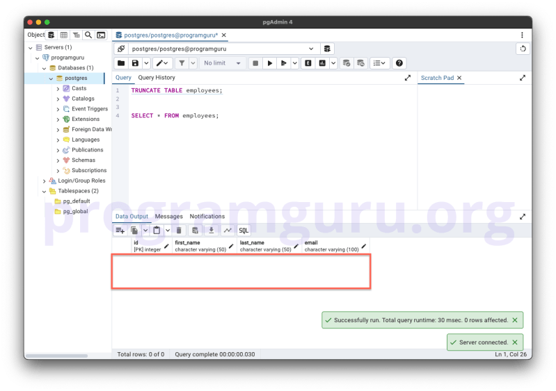 - PostgreSQL TRUNCATE TABLE: Syntax, Examples & Limitations - MySQLCode