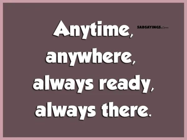 - Anytime, anywhere, always ready, always there - SadSayings.com