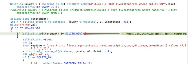 - iphone - Crashing on sqlite3_step line? - Stack Overflow