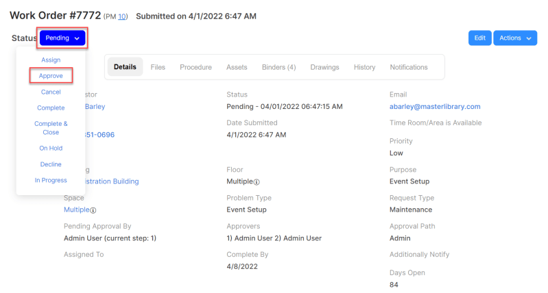 - Editing a Work Order – ML Work Orders